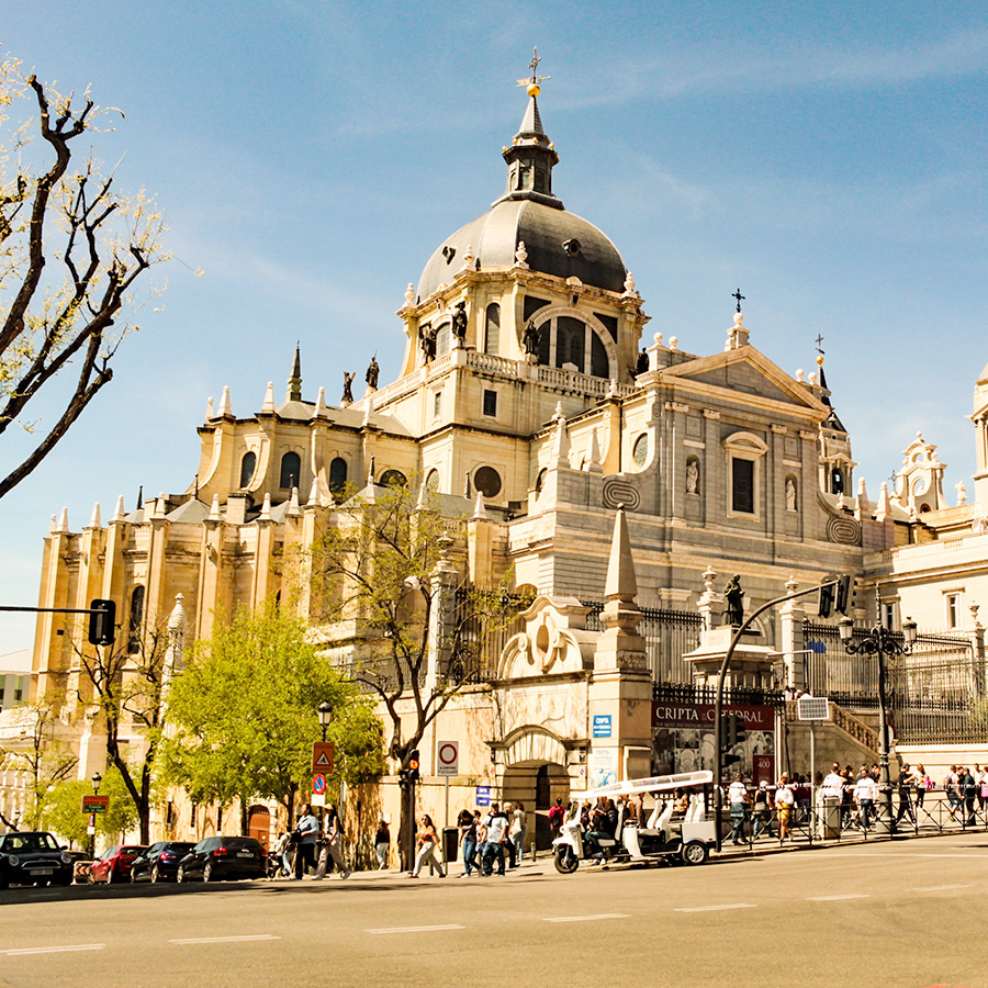 Museu do Prado Museu Reina Sofia Museu Thyssen-Bornemisza Jardins do Retiro Portas do Sol Praça de Espanha Plaza Mayor Catedral de Almudena Palácio Real Palácio de Cibeles Porta de Alcalá Parque Europa Estádio Santiago Bernabéu Parque Warner Madrid
