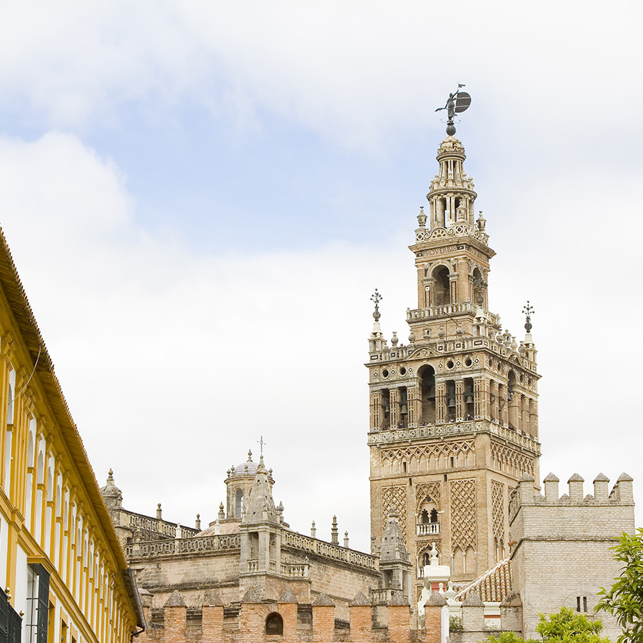 Catedral de Sevilha e Giralda Palácio Real de Sevilha Praça de Espanha Parque Maria Luísa Plaza de America Museu de Belas-Artes de Sevilha Setas de Sevilla Torre del Oro Estádio Ramón Sánchez Pizjuán Isla Mágica